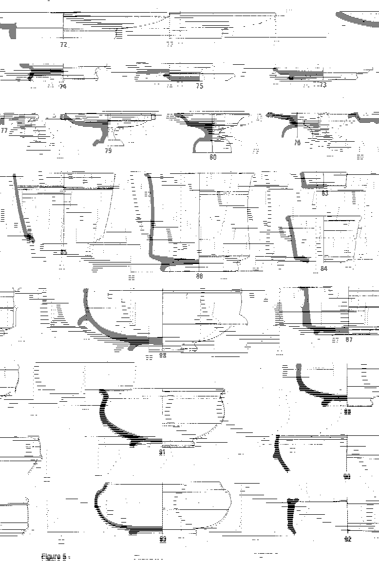 No 6: Plus rare, cette forme présente une large ouverture pour une faible hauteur totale. La lèvre est plate et généralement g}illochée. Il s'agit d'une production de la phase 7.